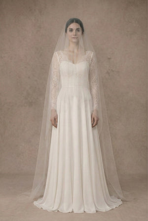 "There is nothing like the romance of a drop veil. The way the blusher frames your face during the ceremony, then lifts to reveal your radiant smile." — Sarah, Founder