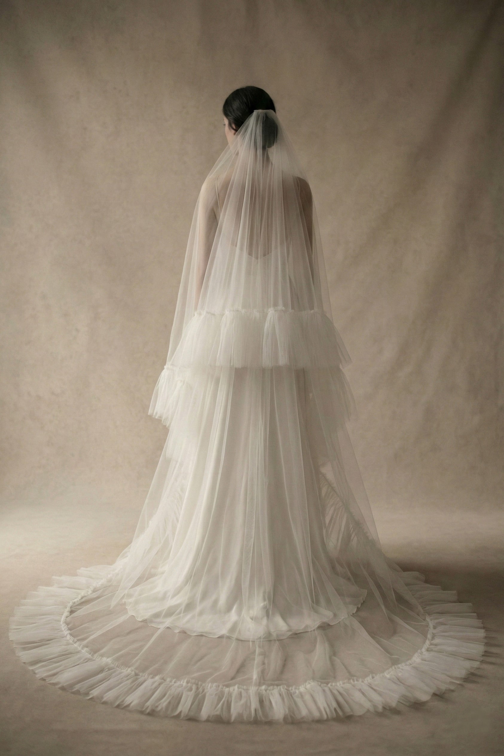 "There is something incredibly nostalgic yet modern about a ruffle edge. I love this piece because it frames the bride in a halo of soft texture—it’s pure romance, designed to make your walk down the aisle feel like a fairytale moment." — Sarah, Founder