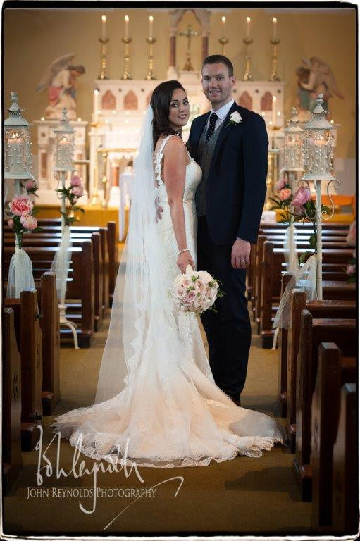 We do love lace edge wedding veils, not only do they look striking against simple and elegant wedding gowns adding just the perfect touch of bridal fuss, but we also think they look really gorgeous when combined with lace gowns- it's a great way of bringing the veil and the dress together. Our bride Orla chose to finish off her wedding day look with our single tier lace edge veil called Coria. We think Orla is a perfect example of how choosing a lace veil to match your lace wedding gown can create an exquisite look. We absolutely love you gown Orla!