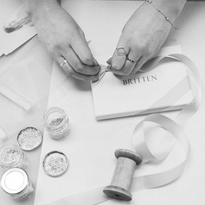 When your bracelet arrives it's a very special experience. We use luxurious deep boxes designed to keep your Britten piece safe for generations to come. Inside this box, nestled in soft tissue paper, you'll find a dust-bag, also handmade in our workshop, with your bracelet within.
