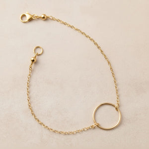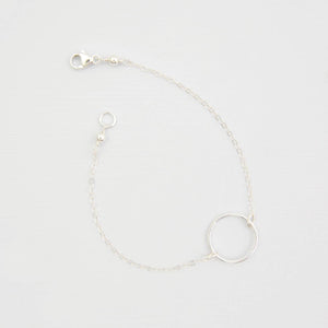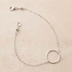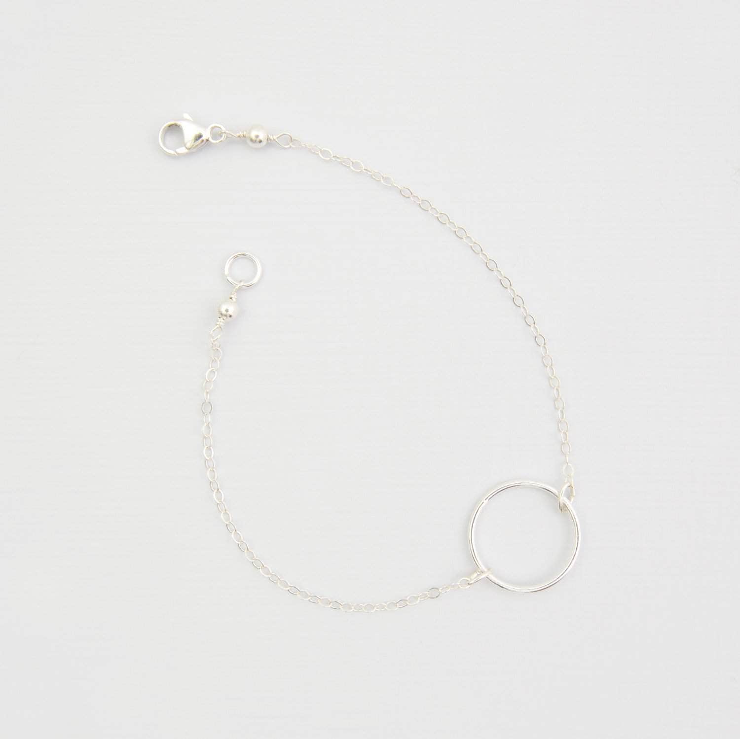This delicate bridal bracelet features an everlasting circle hand wired onto a delicate chain.