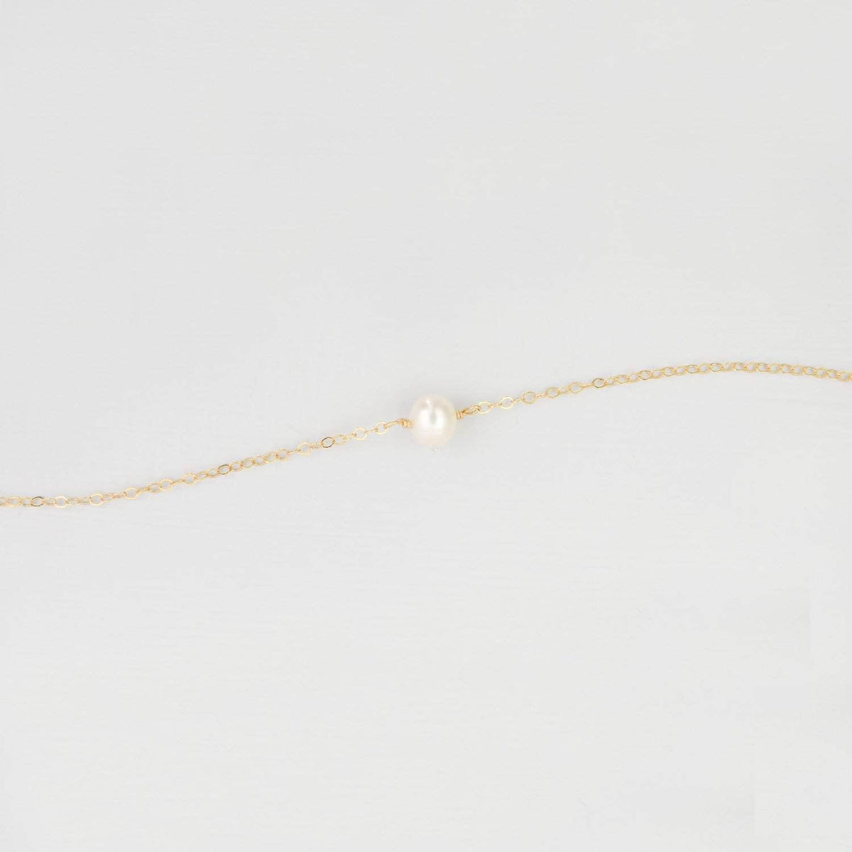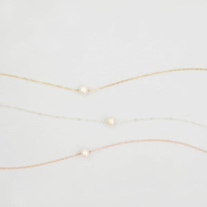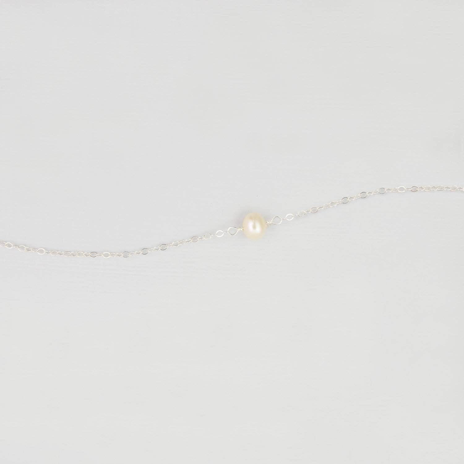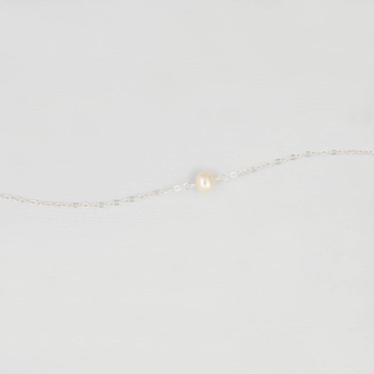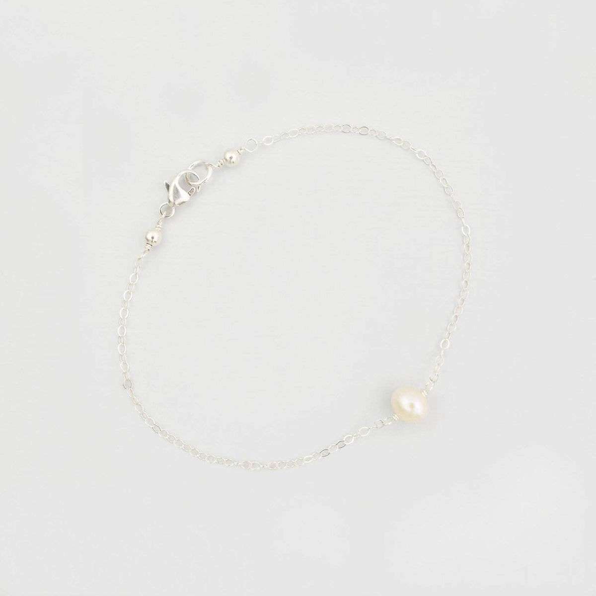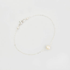 This lovely bridal bracelet features a single freshwater pearl, which is hand wired onto a delicate chain.