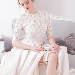 Your garter will arrive safe in one of our handmade lace dustbags. Choose to add a luxurious box to keep your garter safe for generations to come.