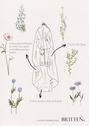 Britten custom veils start from £250. Our ready to wear veil collection offers timeless designs, handmade in England, with shorter lead times and a lower price point. These pieces can still be personalised with embroidery.
