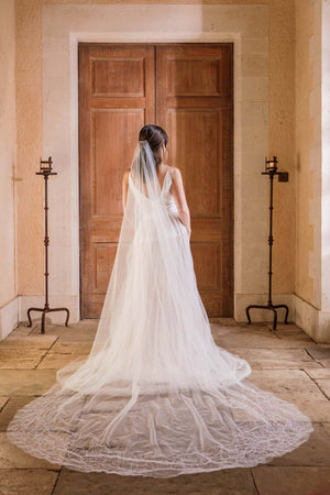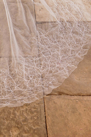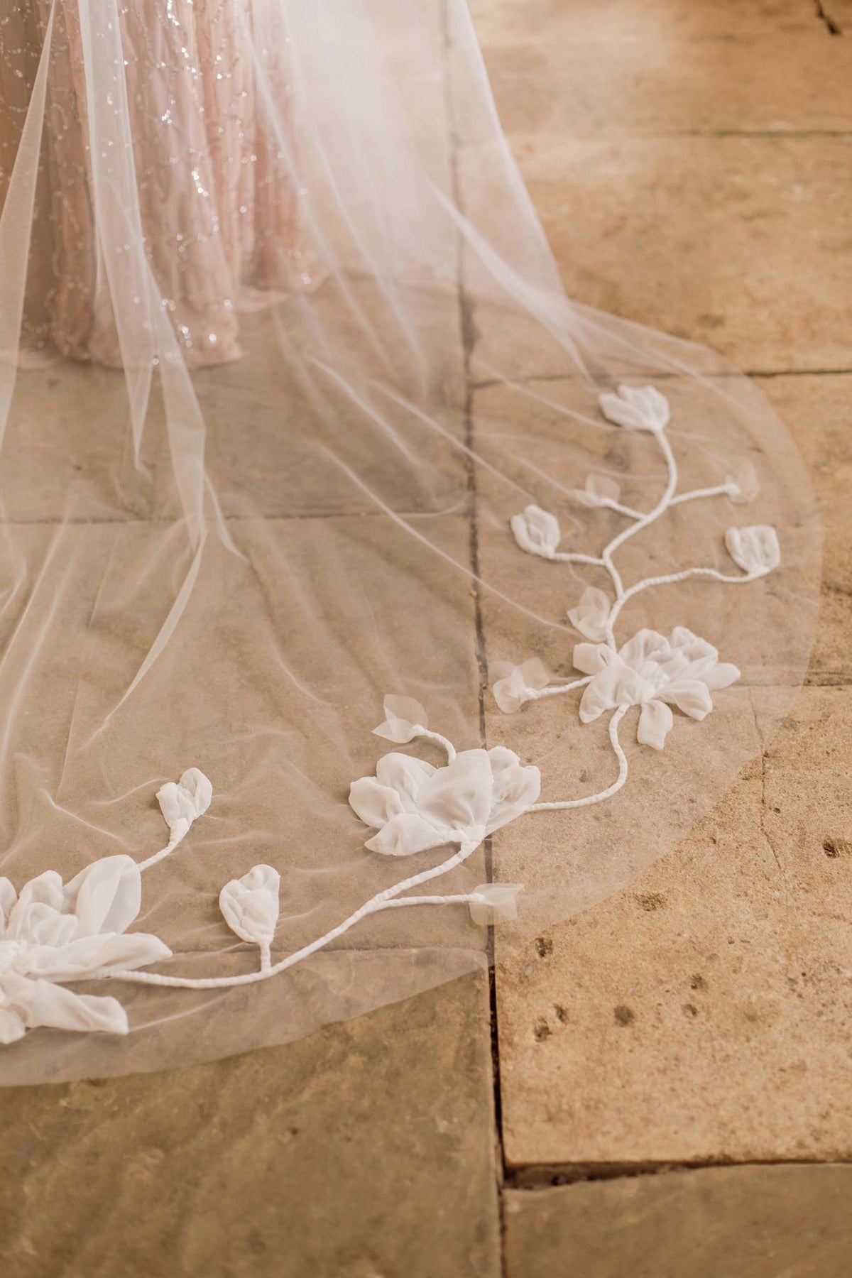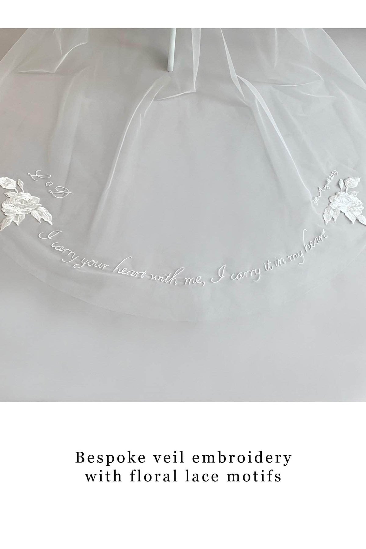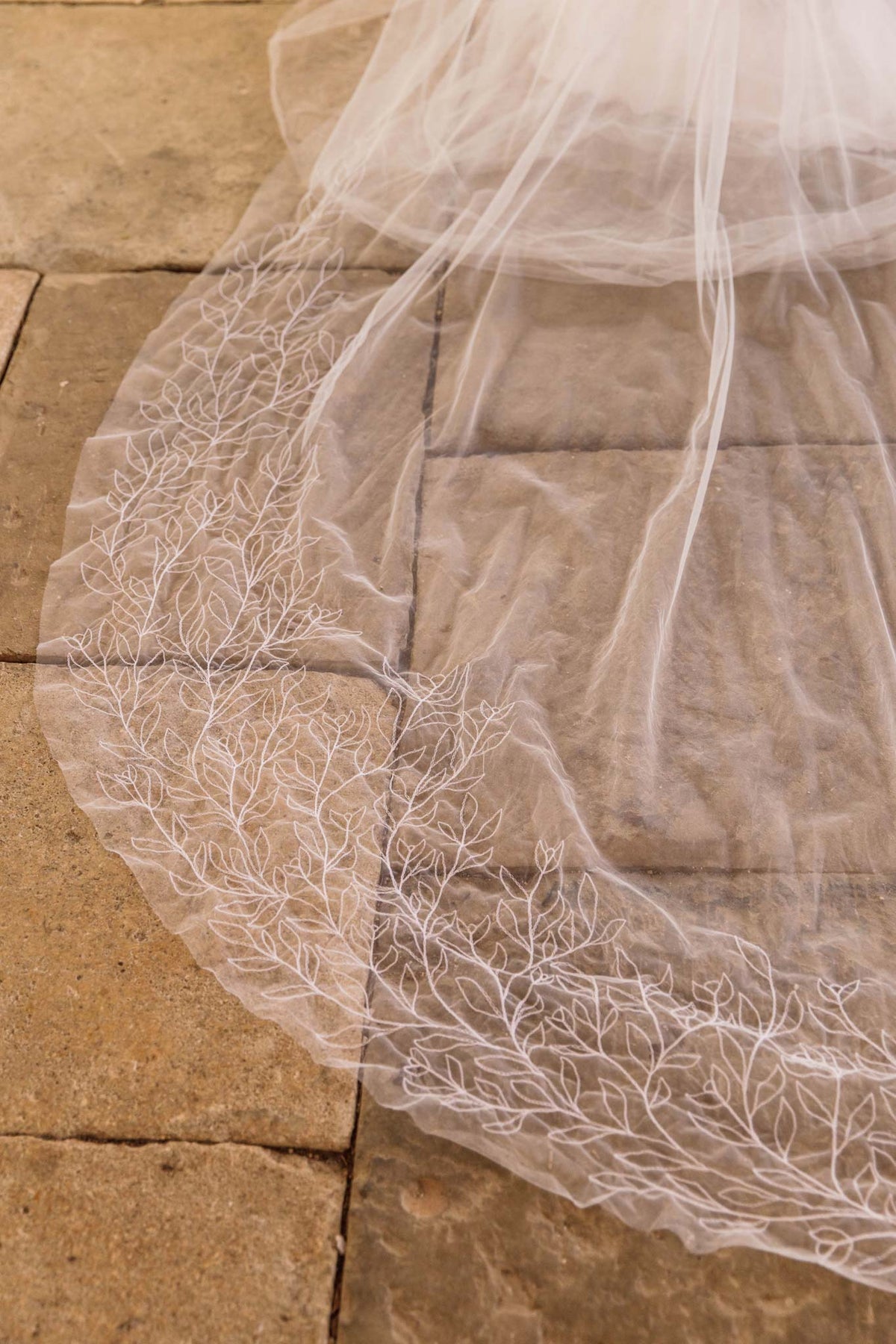 Sarah Jane creates one of a kind luxury custom wedding veils in collaboration with you. Every element of your wedding veil can complement your theme, style and venue. Customise the edging, style, length, embroidery, comb and every aspect of your veil.