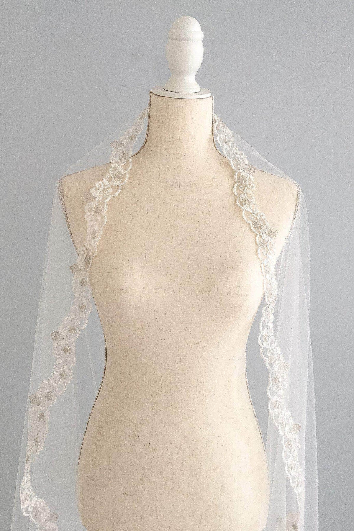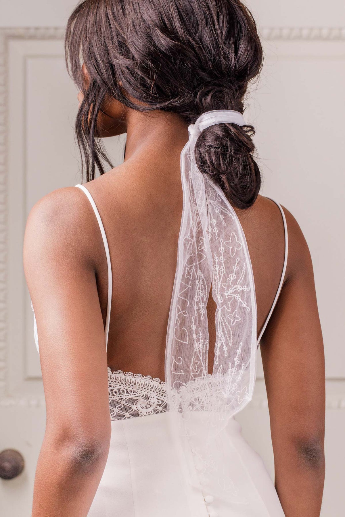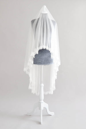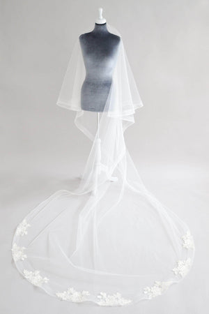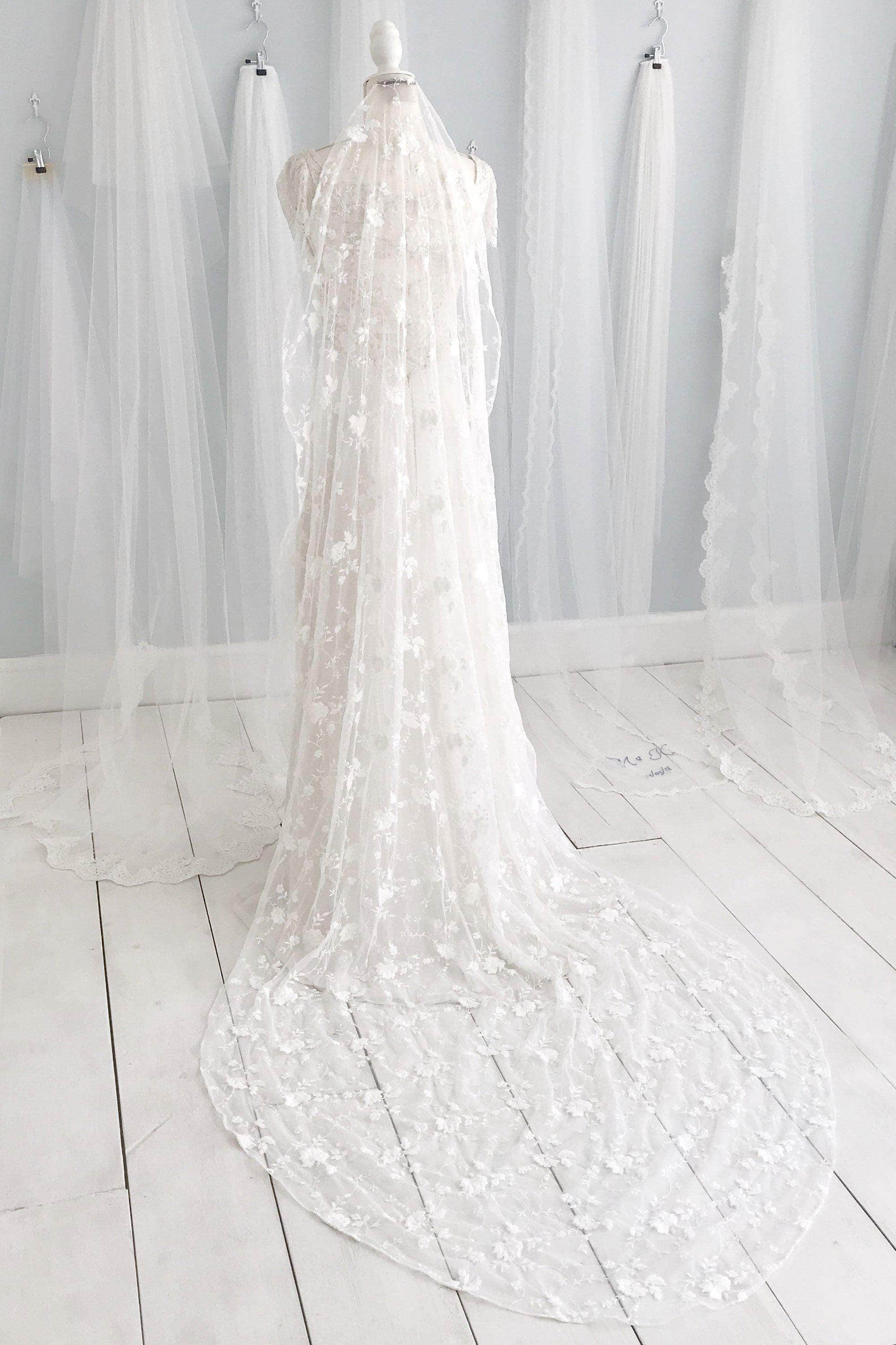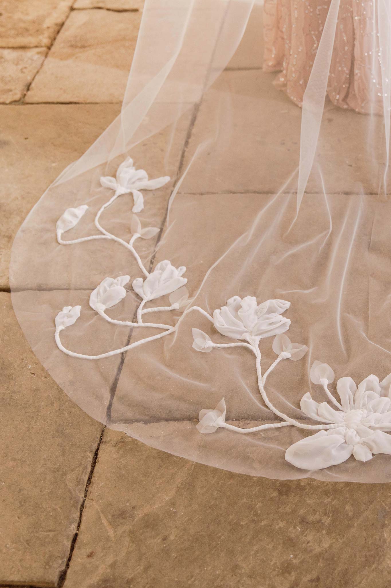 Sarah Jane creates one of a kind luxury custom wedding veils in collaboration with you. Every element of your wedding veil can complement your theme, style and venue. Customise the edging, style, length, embroidery, comb and every aspect of your veil.