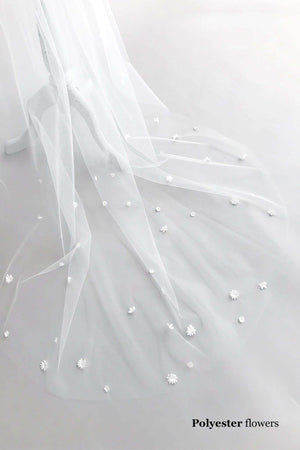 Edge & Finish: This veil has a cut edge finish and the train is adorned with flowers.