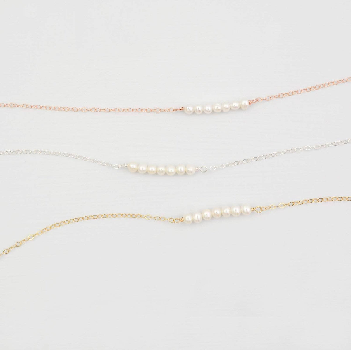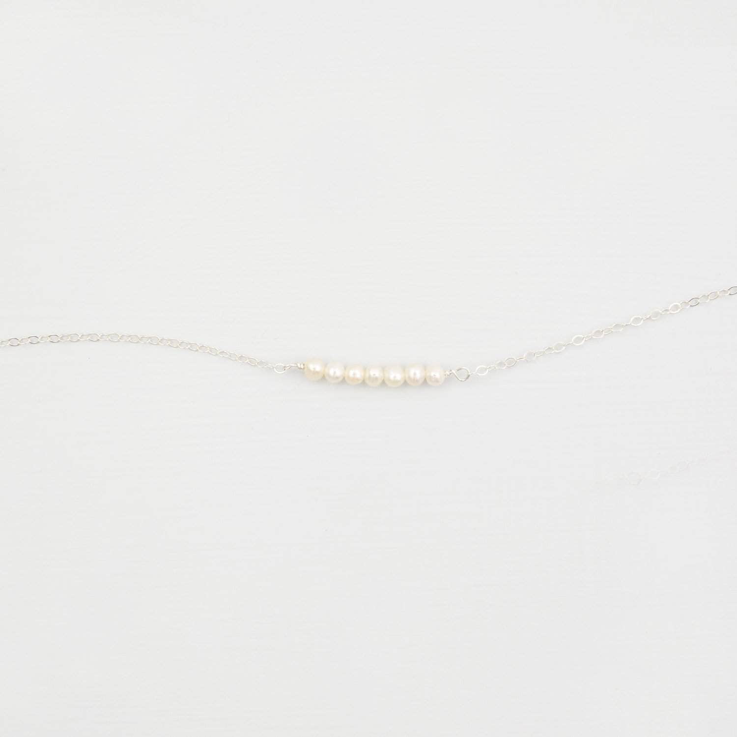 Seven tiny freshwater pearls are handwired onto a delicate chain for a truly wonderful piece of bridal jewellery. A dainty piece perfect for layering with other necklaces on your big day.