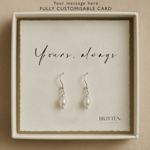 These pearl earrings are entirely handmade in our ancient workshop just outside Bath, England and delivered worldwide. Available with 14k gold-filled or sterling silver findings.