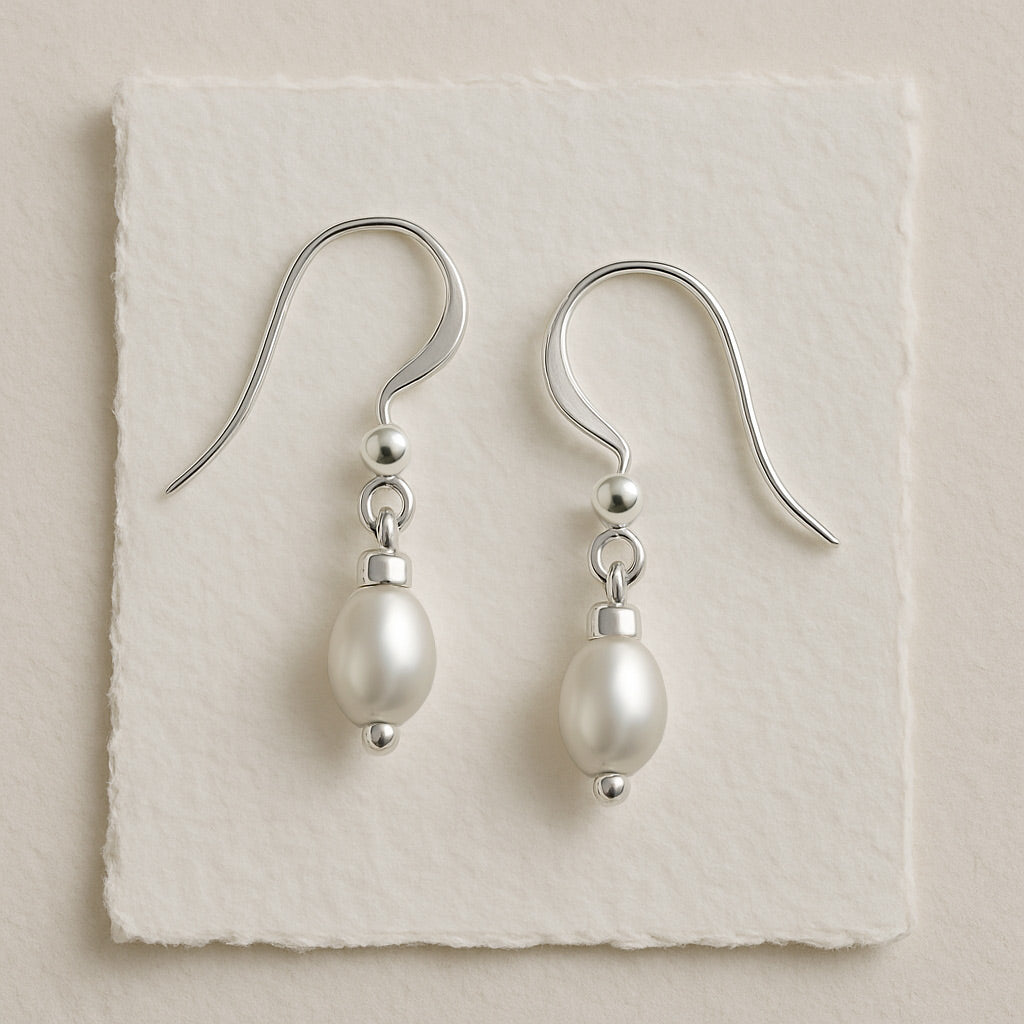 A stunning pearl drop wedding earring made from freshwater pearls and gold or silver wire.