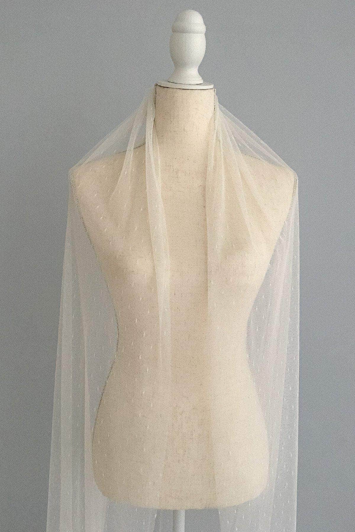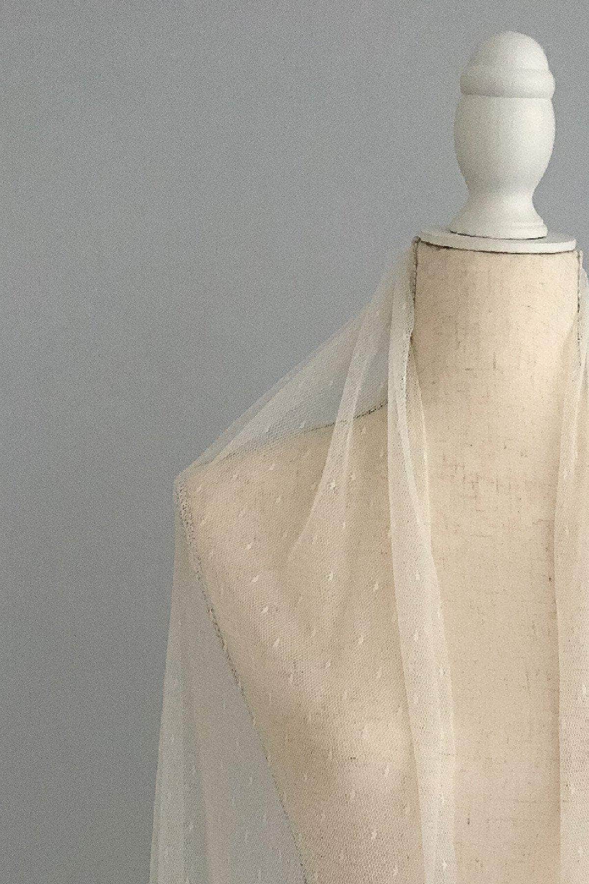Material & Colour: Our polka dot veil is available in silk style tulle in pale ivory.