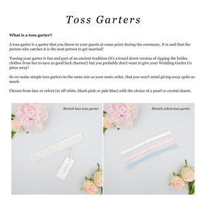 Your garter will arrive safe in one of our handmade lace dustbags. Choose to add a luxurious box to keep your garter safe for generations to come.