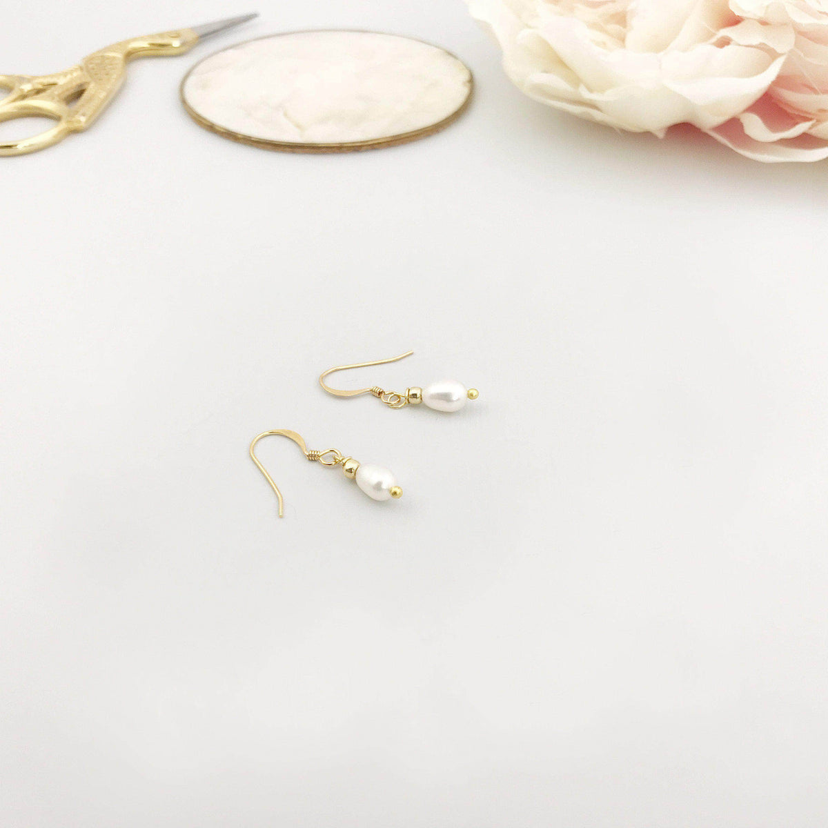 These pearl earrings are entirely handmade in our ancient workshop just outside Bath, England and delivered worldwide. Available with 14k gold-filled or sterling silver findings.