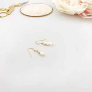 A stunning pearl drop wedding earring made from freshwater pearls and gold or silver wire.