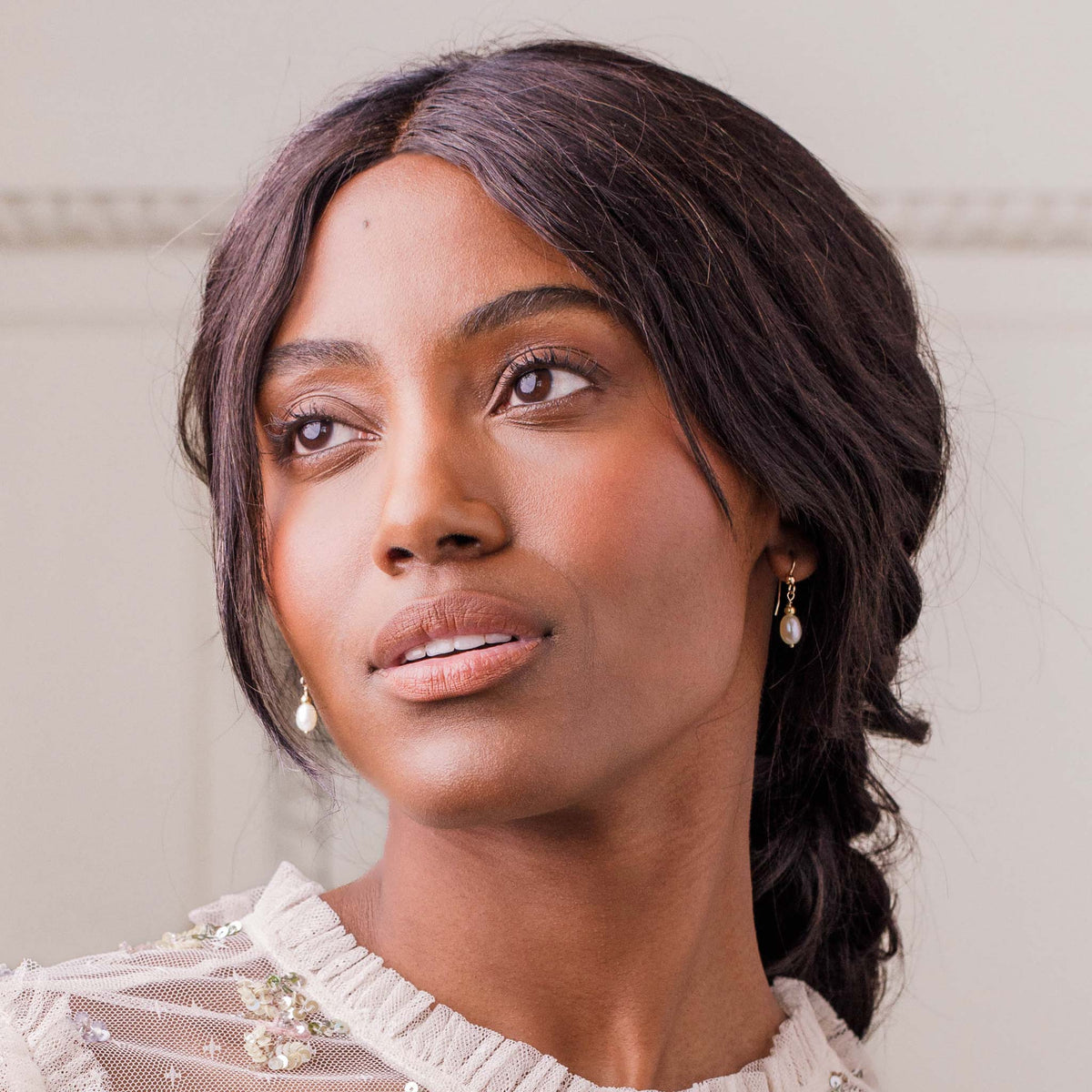 "We love freshwater pearls on bridal earrings!" Sarah Jane x{meet our friendly team}