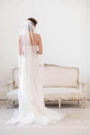 Edge & Finish: This veil has a cut edge finish with a scattering of twinkling crystals.